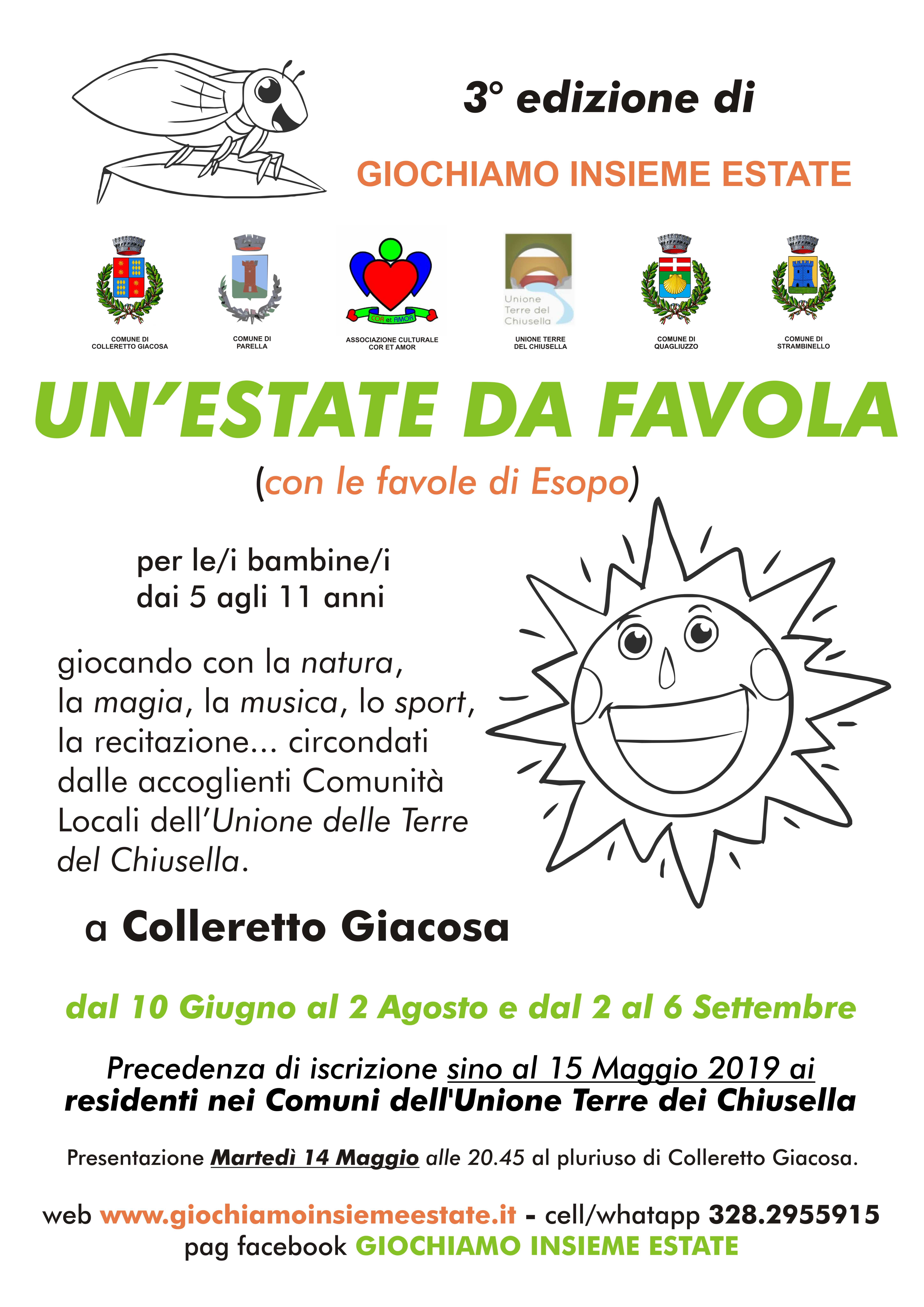 In data 14 maggio 2019, alle ore 20.45, presso il Salone pluriuso di Colleretto Giacosa si svolgerà la presentazione della terza edizione di 2Giochiamo insieme estate".