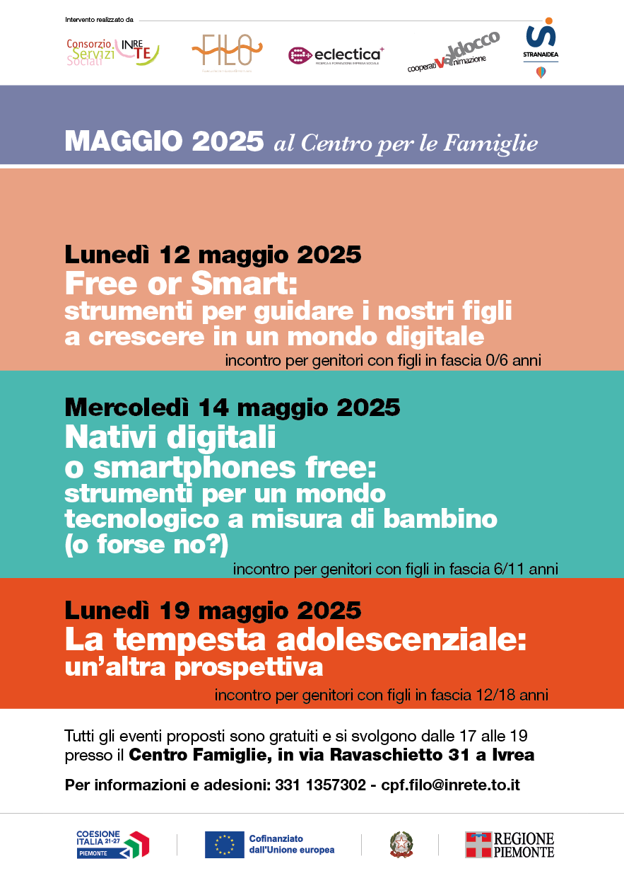 Al Centro per le Famiglie F.I.L.O. di Ivrea continuano gli incontri rivolti a genitori con figli in