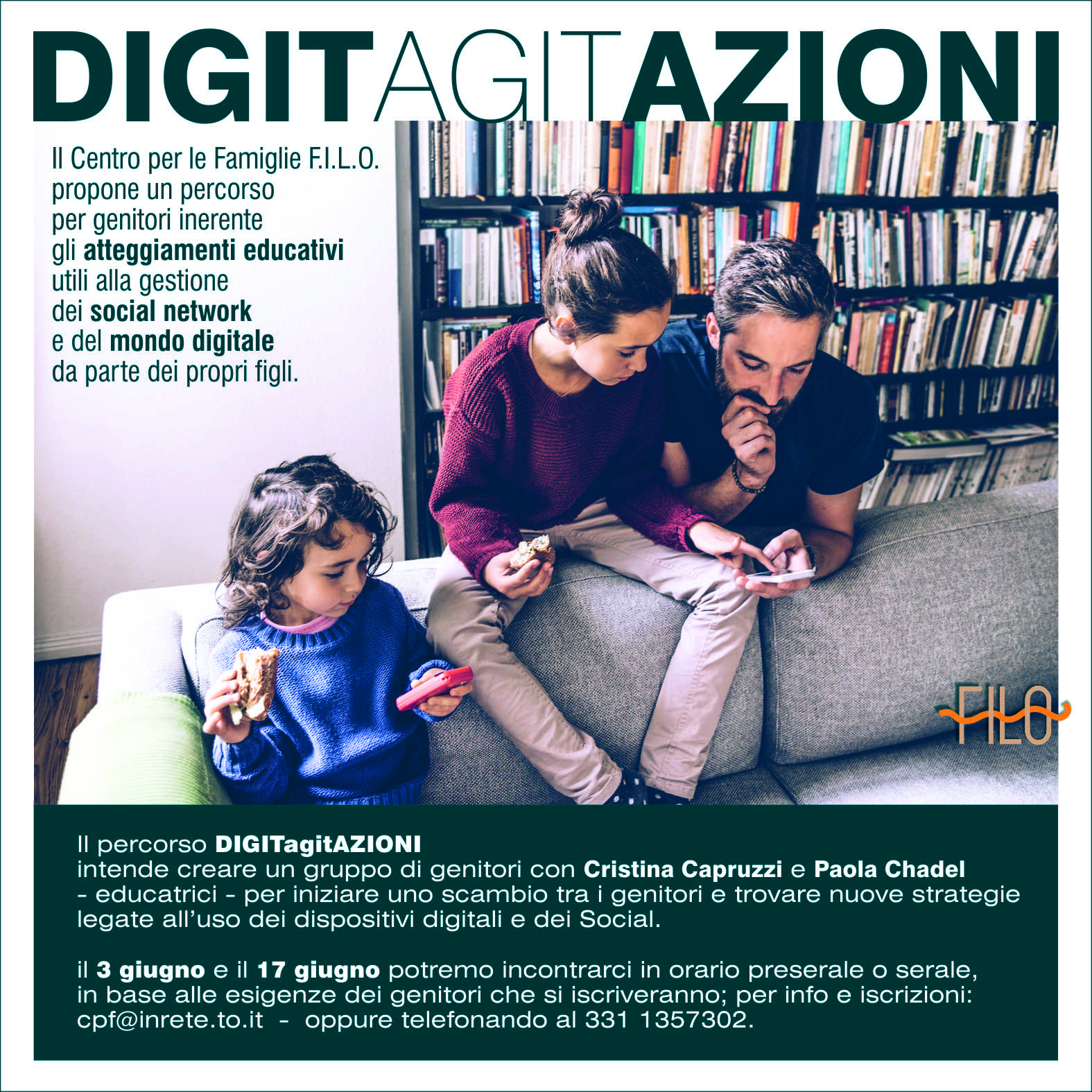 l genitori interessati potranno inviare una mail a cpf.filo@inrete.to.it chiedendo la partecipazione al gruppo genitori del progetto “Digitagitazioni” e indicando nome, cognome, mail e cellulare per poter essere contattati per date, orari e aspetti organizzativi generali.