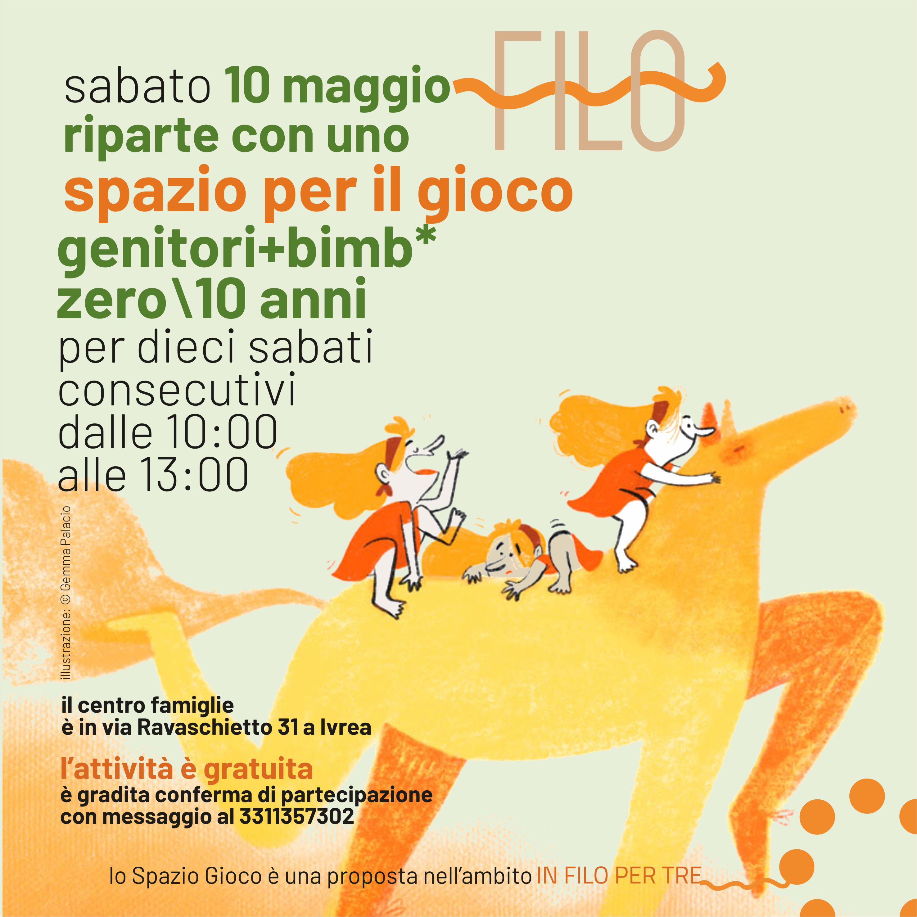 Inoltre, il 10 maggio 2025 riprende lo Spazio Gioco, ciclo di incontri genitori/figli 0-10 anni (cfr. locandina).